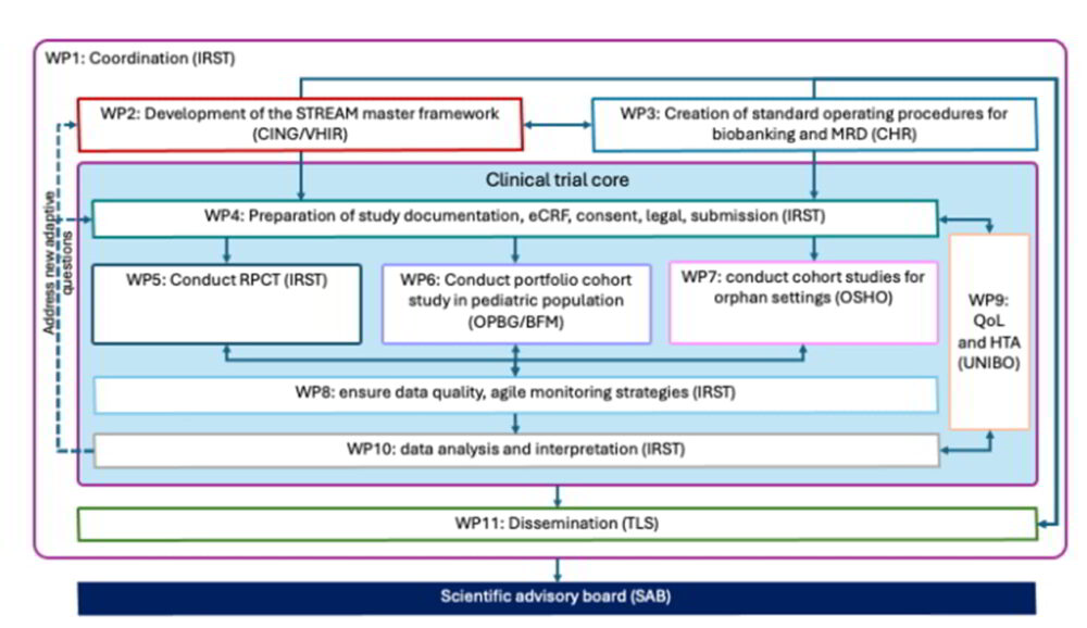 | WP5 | Conduct RPCT | Enroll 339 R/R AML patients across Europe using STREAM as an inclusion platform, randomize patients in RPCT, treat patients according to the experimental arm, and collect data. |
